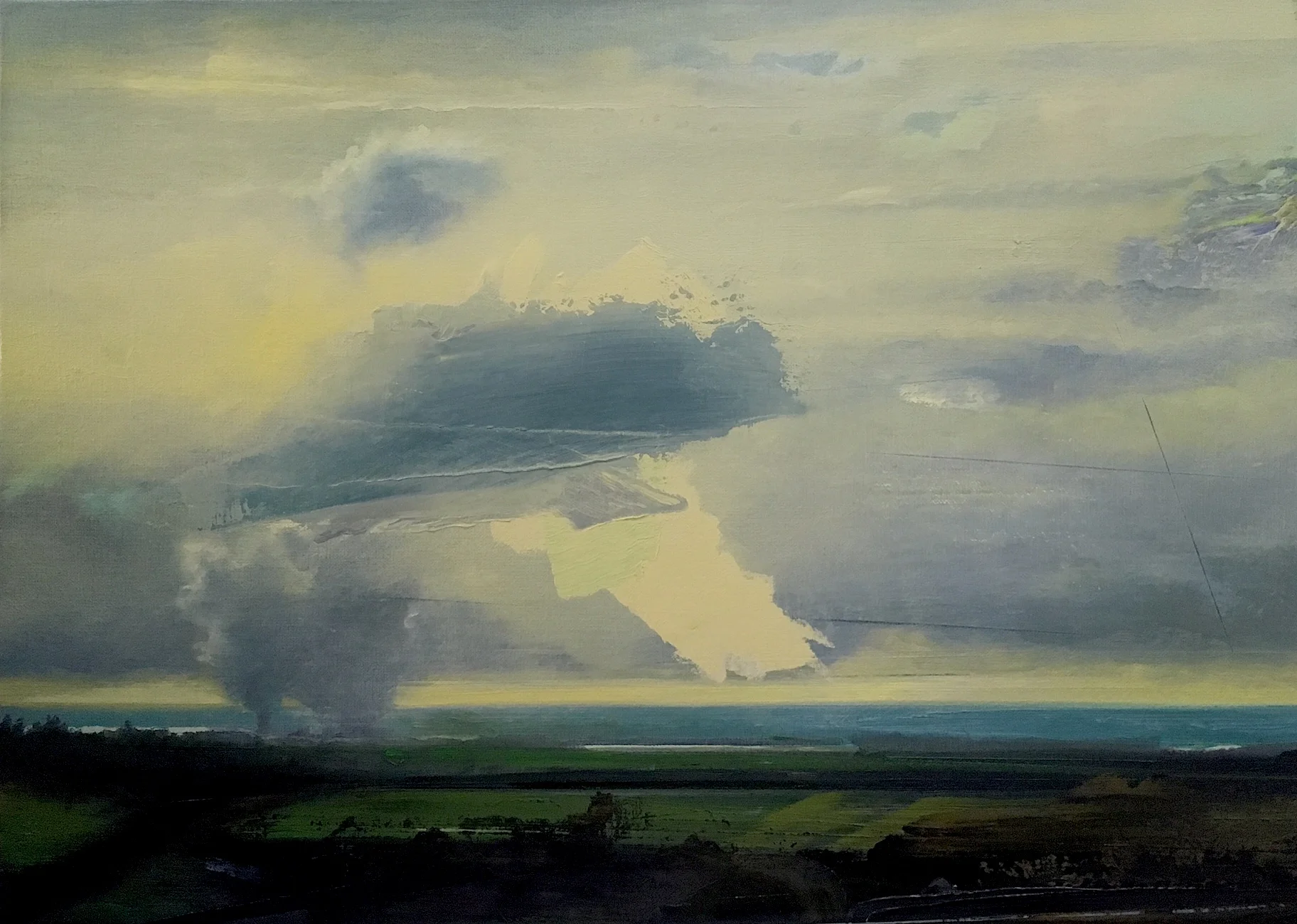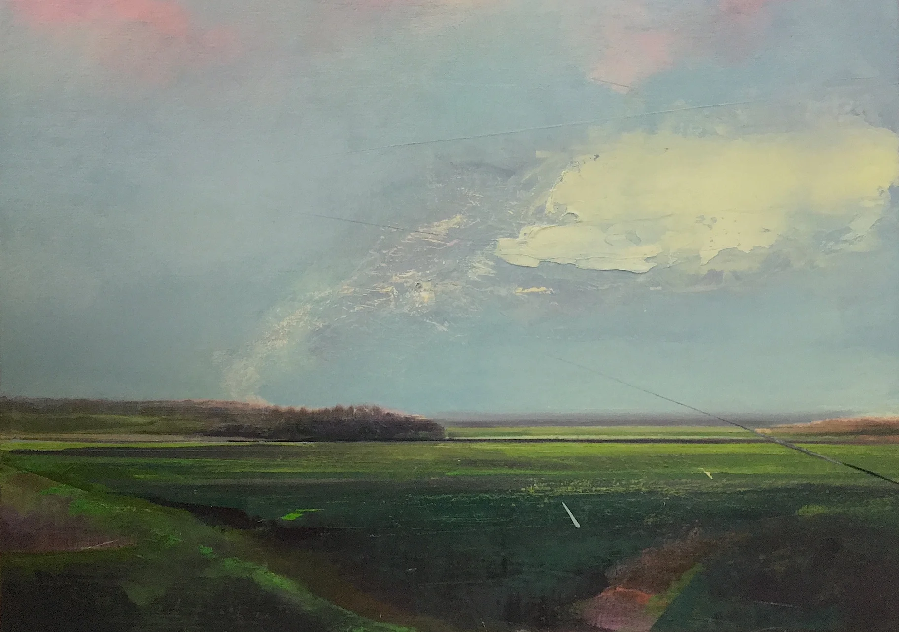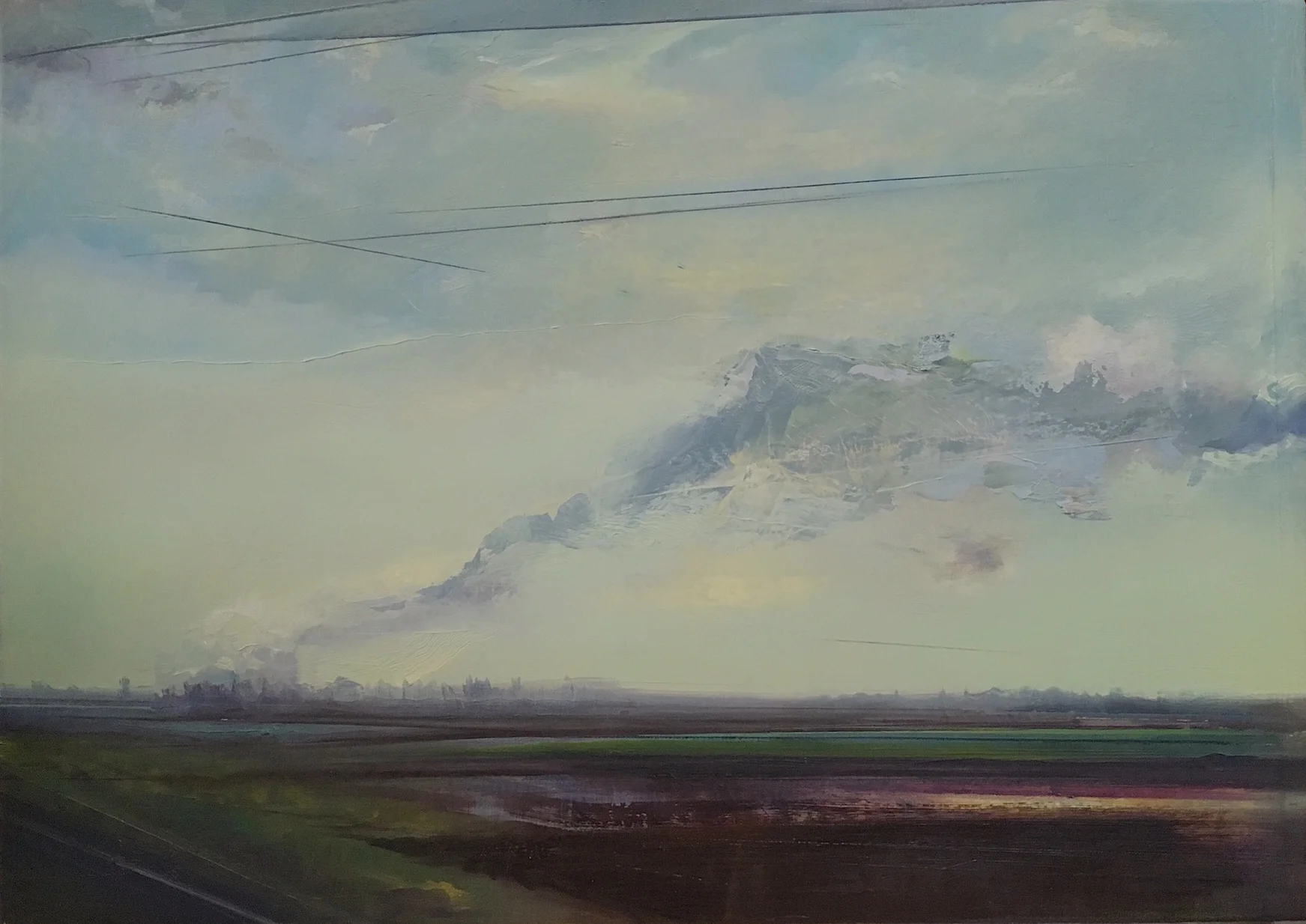 Reflecting on my own Rhenish upbringing, my current work explores the German notion of Heimat. A recent series, The Immerath Project, is named after a nearby village currently being re-located as a result of strip mining, its buildings torn down to give way to excavated expanses. Immerath acts as a stand-in for a region in which disappearance and development, nostalgia and progress go hand-in-hand. The Immerath paintings portray a scarred landscape, on whose plowed surface, like a palimpsest, traces of old layers remain visible.